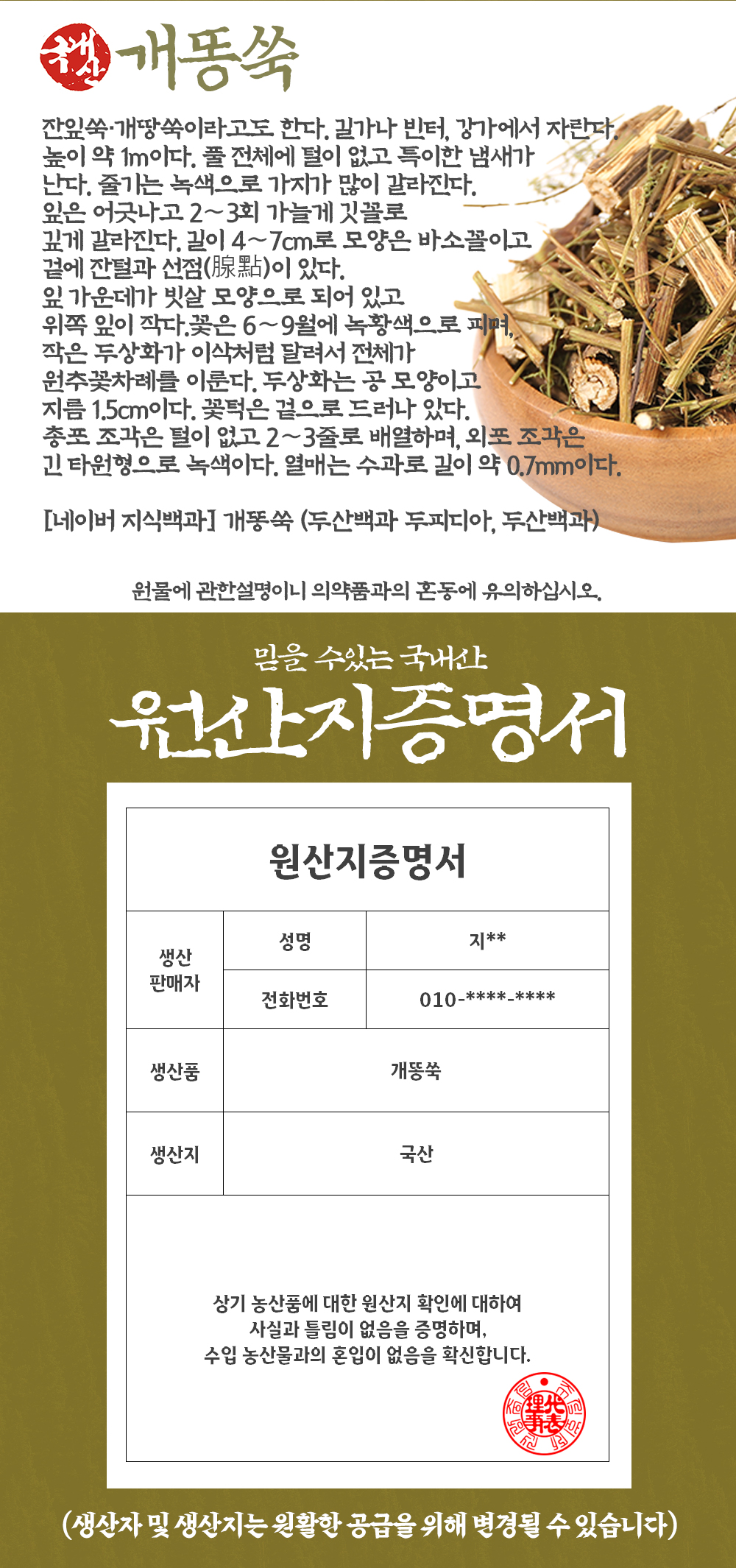 개똥쑥 300g