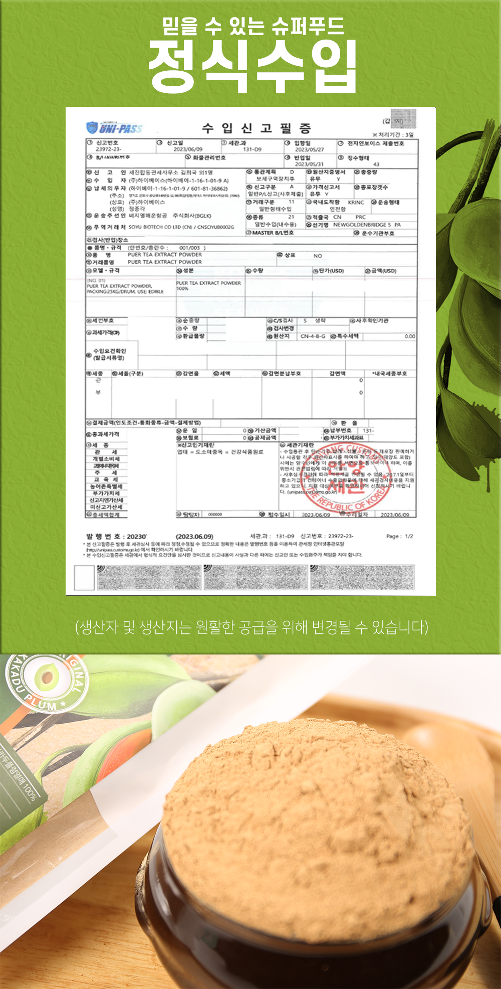 카카두플럼 추출분말 500g