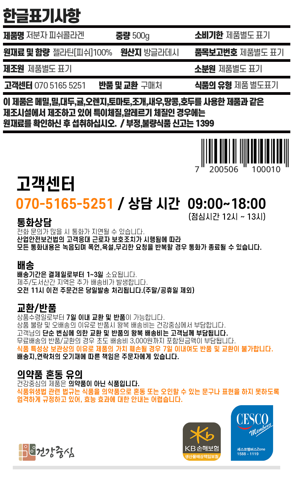 저분자 피쉬콜라겐 분말 500g